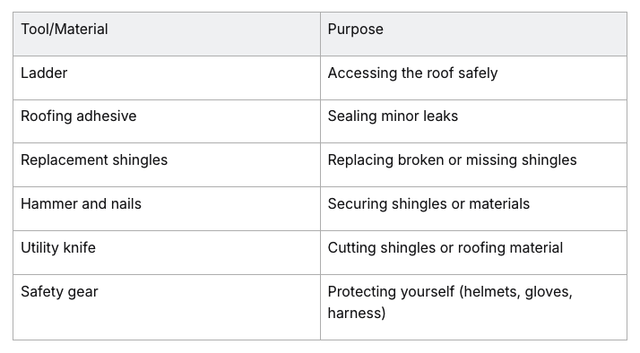 To address simple roof issues, gather the right tools and materials: