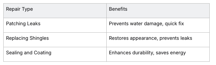 Here's a summary table of common roof repairs and their benefits: